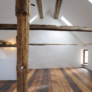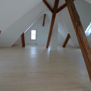 Dieser Parkettboden wurde aus mehreren bauseitig gelieferten Stämmen zum fertigen Massivholzboden erstellt.